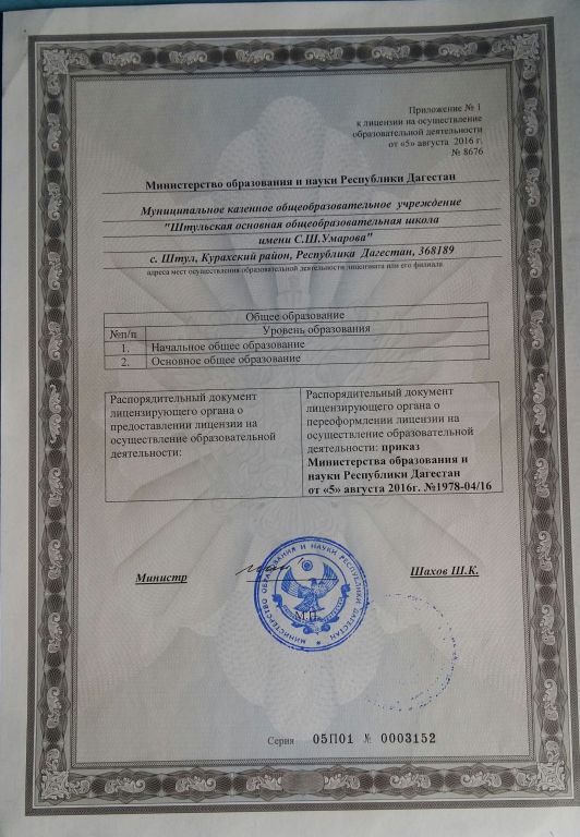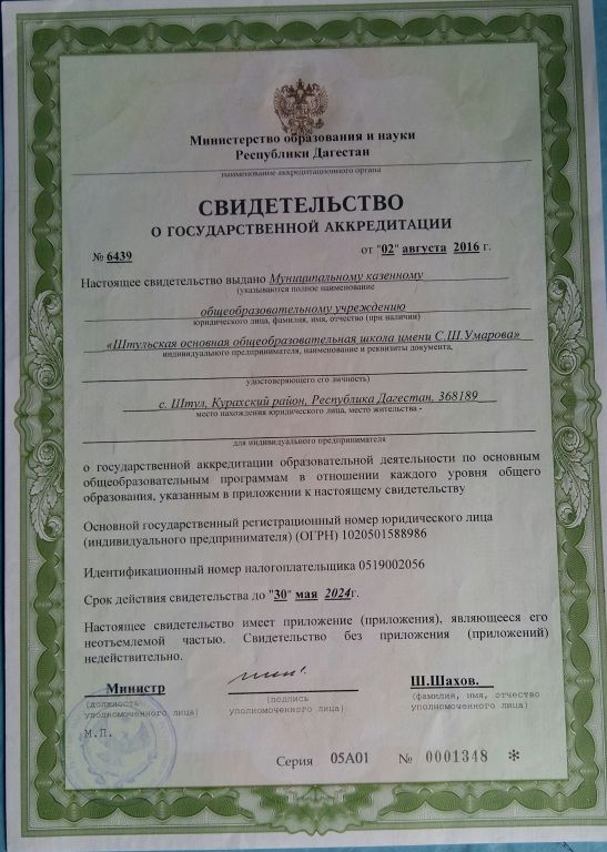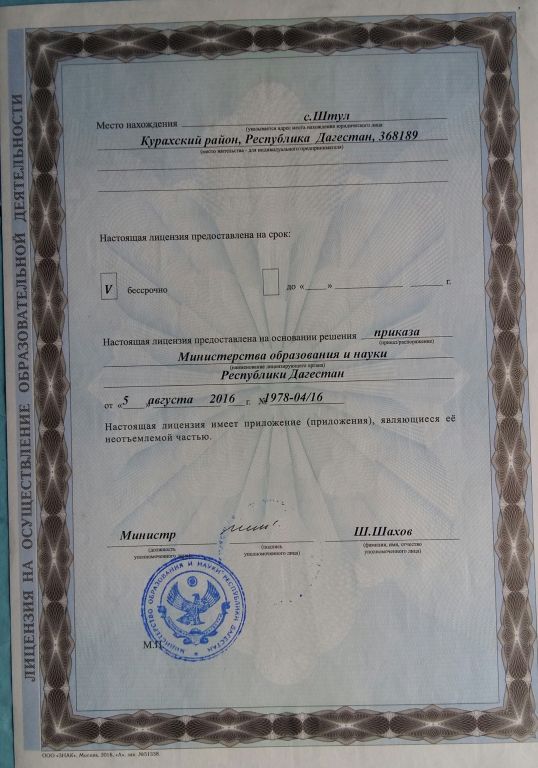 | Адрес местонахождения образовательной организации* | 368189. с.Штул,Курахский район,РД |